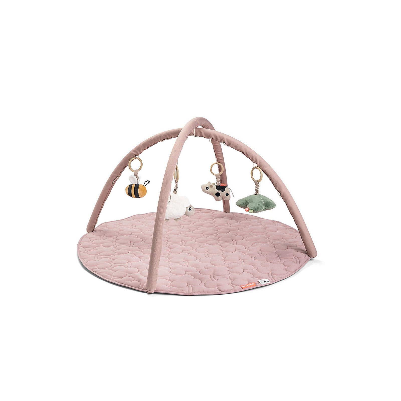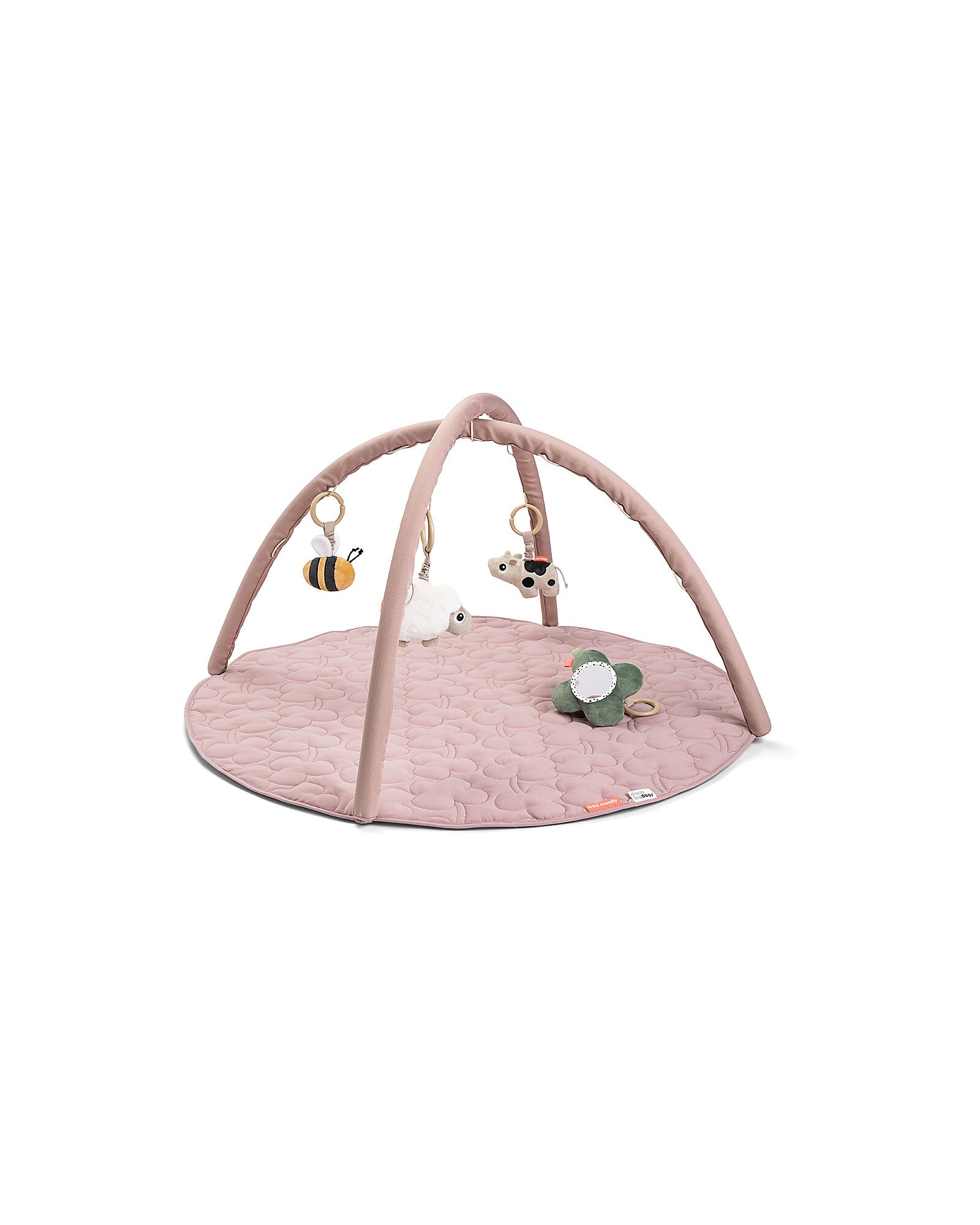 Gli archi si possono regolare, in modo che il tuo bambino riesca ad afferrare i giochini appesi; mentre sulle estremità sono presenti uno specchietto e un disco peloso per stimolare vista e tatto. Il set comprende anche un tappeto gioco trapuntato che si può utilizzare separatamente; si arrotola ed è dotato di un pratico manico per trasportarlo facilmente.