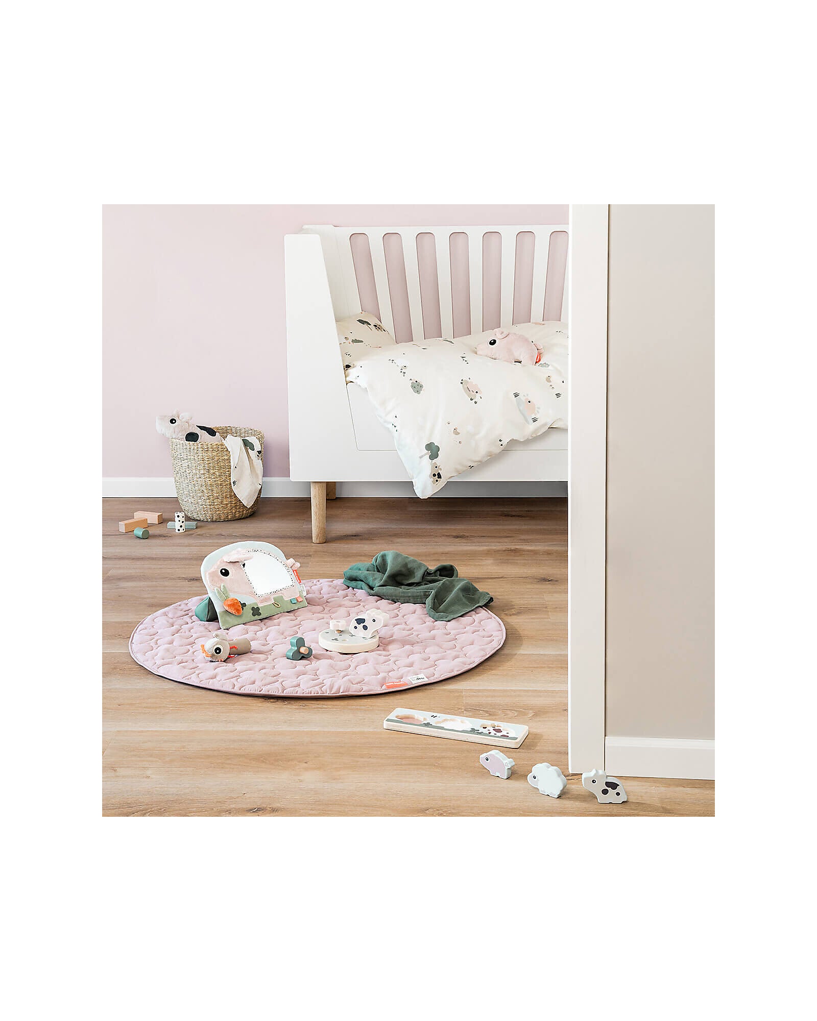Cura: arco e specchio: pulire con un panno umido, non immergere in acqua; tappeto gioco e giocattoli: lavabile in lavatrice a 40°C.