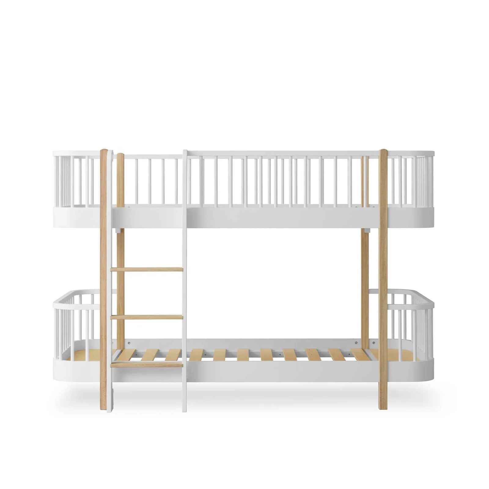 Grazie alle sponde arrotondate e alla totale assenza di spigoli, la parte superiore del letto garantisce totale sicurezza e libertà di movimento per il tuo bambino. Realizzato in legno di quercia, il letto è disponibile in due varianti: una completamente bianca e l’altra con rifiniture in quercia nordica a contrasto.