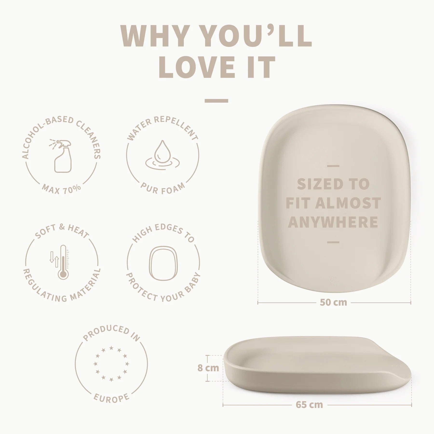 Rendi il cambio pannolino più piacevole con il materassino Sebra in Seabreeze Beige.